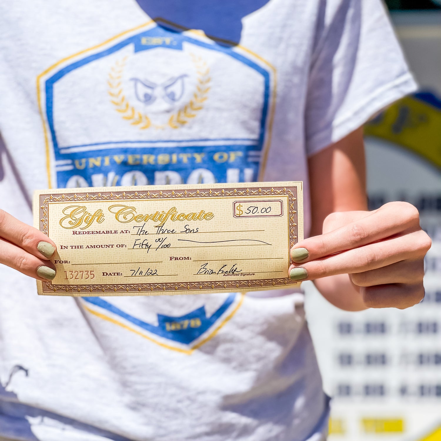 The perfect gift, no matter the occasion. The Three Sons Gift Certificates...